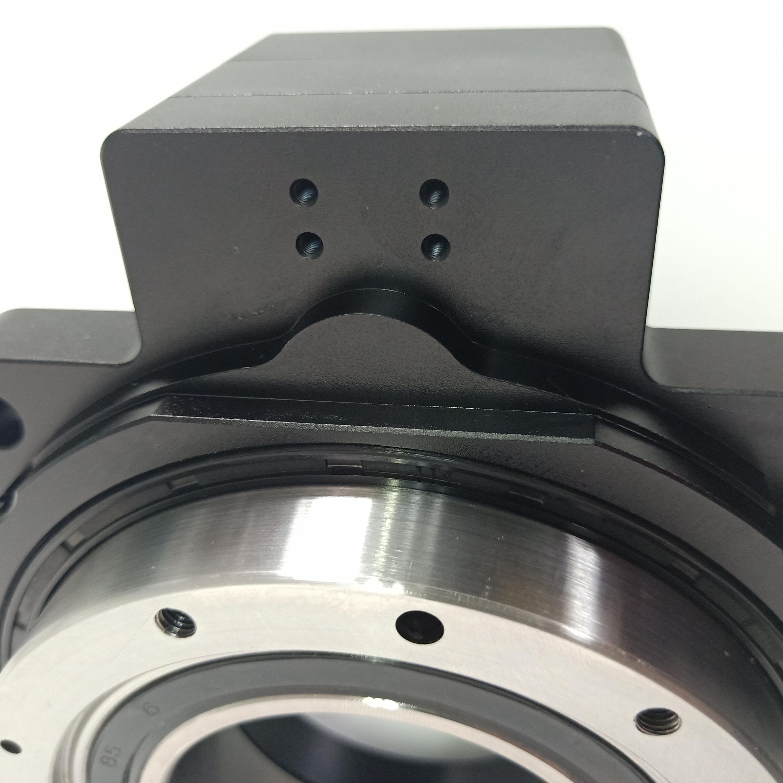 中空旋轉平臺應用可運用與產線自動化改造中旋轉工作臺,激光打標或者雕刻機中的旋轉夾頭,集高工作效率,高精度,高剛性,高性價比于一身,具有結構剛性高,背隙小,傳動穩、噪音低背隙等特點。