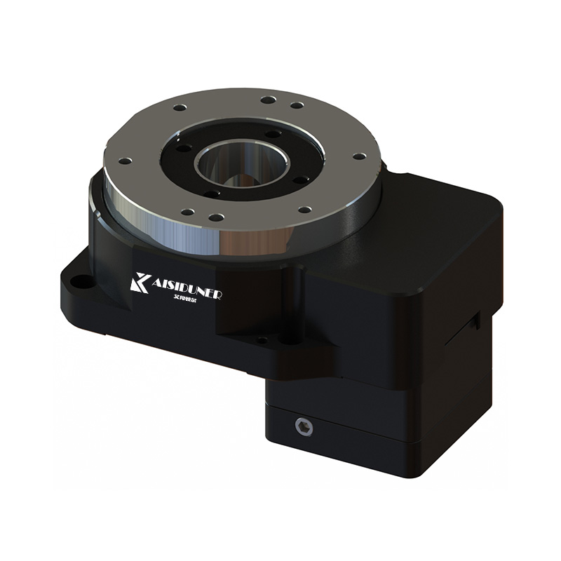 步進中空旋轉平臺采用行星減速的方式來增大輸出力矩,減速比從1至600,輸出力矩范圍較大,能夠滿足各種力矩要求的場合。另外,行星減速機構中的太陽齒同時與三個行齒接觸,加之先進的齒輪磨削工藝,使得旋轉平臺的反向側隙達到3弧分,精度媲美DD馬達。